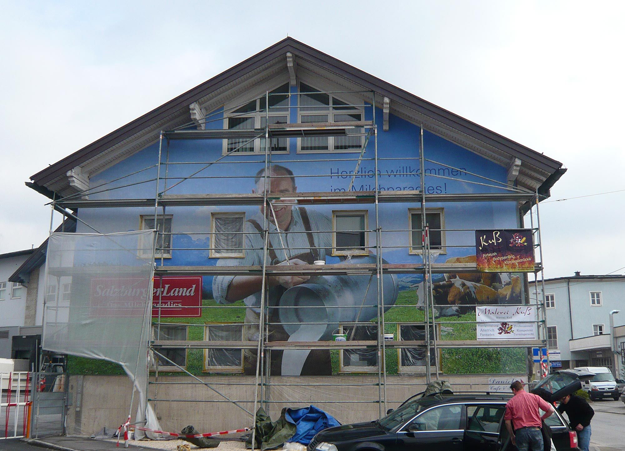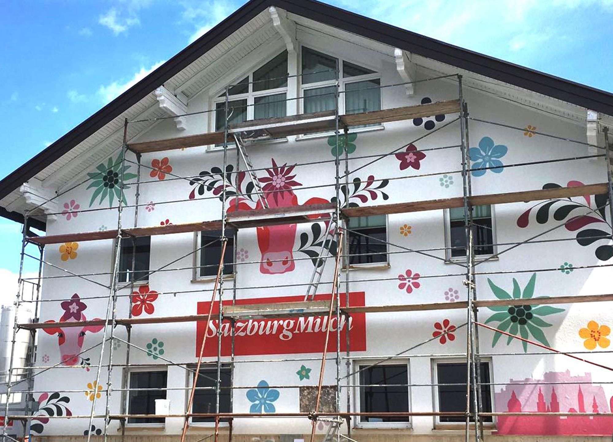 Im Zuge des Produktlaunches wurde auch die Hülle des Salzburger Firmengebäudes neu gestaltet und das 2011 inszenierte Fassadenbild-Motiv ganzflächig neu gestaltet. Der echte Premium-Milch Spezialist bietet den Konsumenten jetzt noch mehr an unverfälschtem, gehaltvollem Geschmack in völlig neuem Design - und das von Weitem sichtbar!