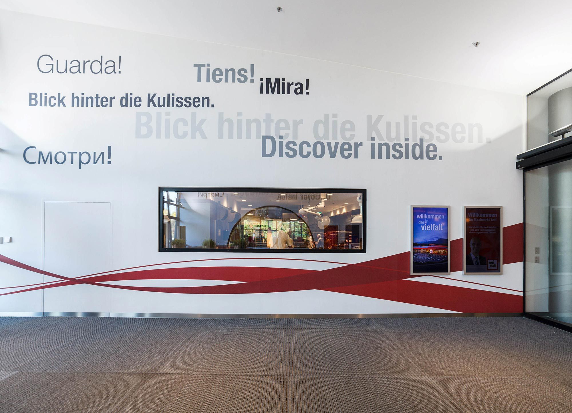 Das von Fassadenbild.com in Kooperation mit LASSNIG advertising & design (Thalgau) entwickelte Konzept und Hauptsujet der Eröffnungskampagne sowie main slogan der neuen Werbelinie "Willkommen in der Vielfalt" sorgt für ein herzliches "Willkommen". Es bespielt die gesamte Glasfront sowie das Entrée des modernen Einkaufscenters und schafft einen aktivierenden und emotionalen Eingangsbereich als Tor zu einer neuen starken Einkauswelt.