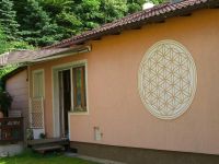 Als schützendes Schmuckstück um den Hals oder am Ohr, als Emblem zur Entstörung von Wohn- und Schlafräumen oder eingraviert in Gläser und Karaffen zur Wasserenergetisierung: die Energie des Symbols soll sich unabhängig von seiner Darstellungart wirkungsvoll auf die Umgebung übertragen. So auch in Bildform - im Kleinen, am Papier, wie im Großen: an der Hausfassade.