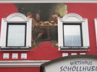 Im Zuge seiner Fassadenrenovierung im Jahr 2009 erhielt das Kirchdorfer Traditionswirtshaus Schöllhuber ein einmaliges Markenzeichen: Durch die "aufgebrochene" Hausmauer wurde der Blick frei auf eine gesellige Runde am bäuerlichen Tisch.